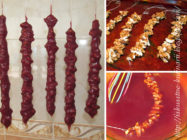 процессе выдержки чурчхела будет приобретает новые вкусовые тона, близкие к