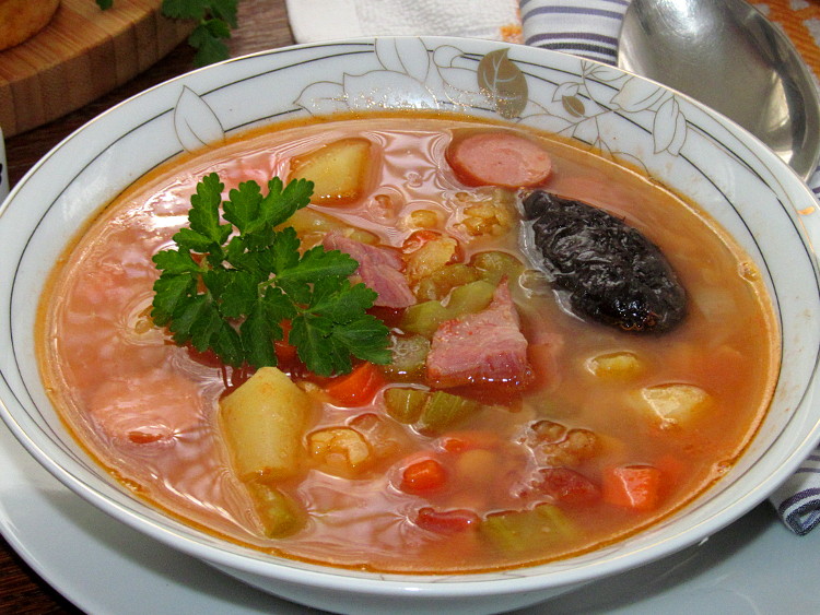 Любимый гороховый супчик на новый лад! Потрясающе богатый вкус и аромат!! Яблоки и чернослив придают супу совершенно новые вкусовые оттенки, отнюдь не навязчивые, и не перебивающие вкус самого гороха))) Не стоит боятся ни яблока, ни чернослива, ведь как раз яблоко делает вкус более мягким и нежным, а чернослив придает супу легкую сладость))) Очень рекомендую приготовить и попробовать такой вариант горохового супчика! Угощайтесь на здоровье!!!
