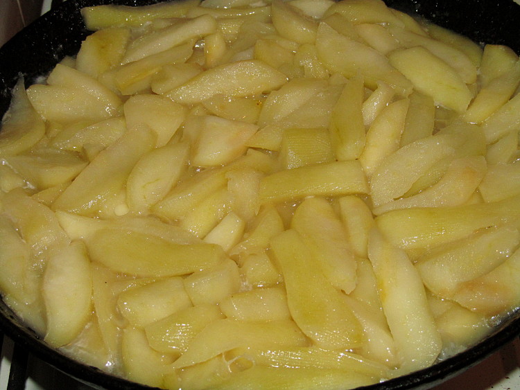 В большой сковороде разогреть сливочное масло, добавить сахар и груши, предварительно откинув их на дуршлаг.