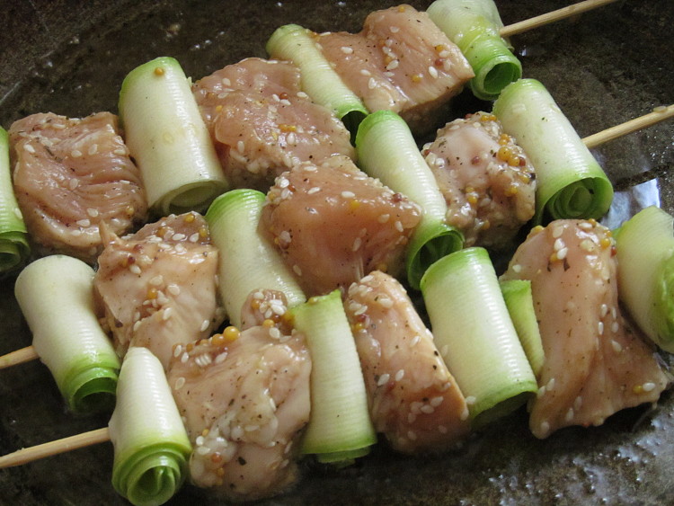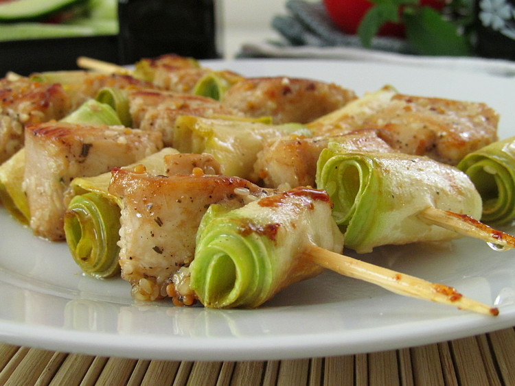 Куриные шашлычки с кабачковыми рулетиками на сковороде