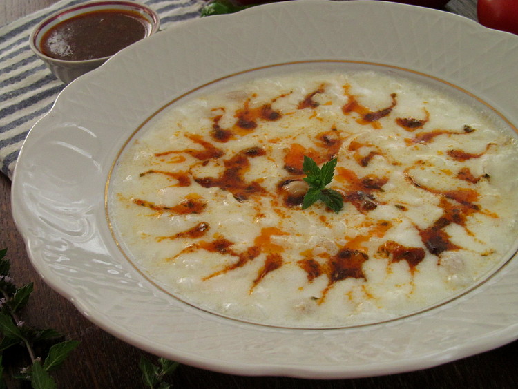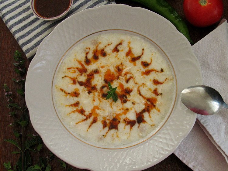 Узкой струйкой ввести йогуртово-яичную заправку в суп, при всем этом повсевременно и активно мешая, чтоб она не свернулась.