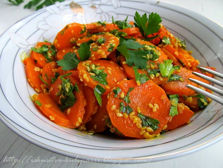 Если вы не любите морковные салаты, значить вы просто не пробовали этот!!! Изумительно вкусный и наполненный ароматами Востока))) Яркий и очень полезный. Лично для меня этот салатик стал находкой и открытием. Я даже не ожидала, что морковь можно приготовить настолько вкусно! Такой салатик замечательный аккомпанемент к мясу, либо рыбе, и он будет отлично смотреться и на праздничном, и на будничном столе!!! Угощайтесь!!!