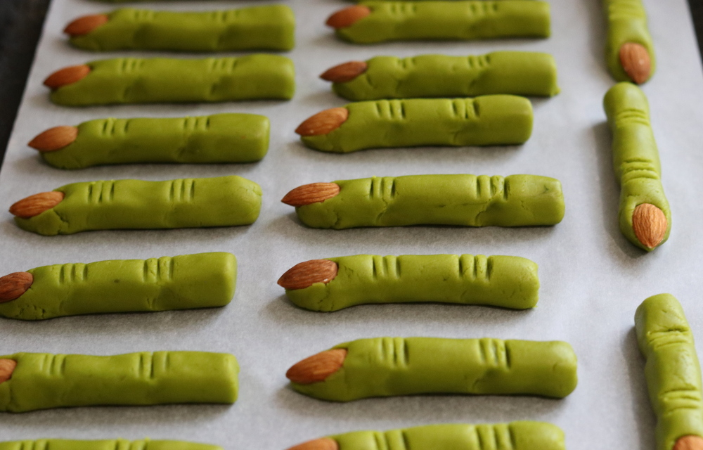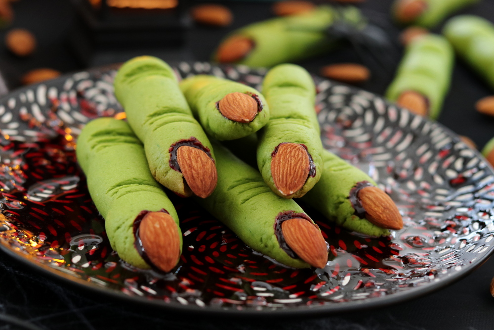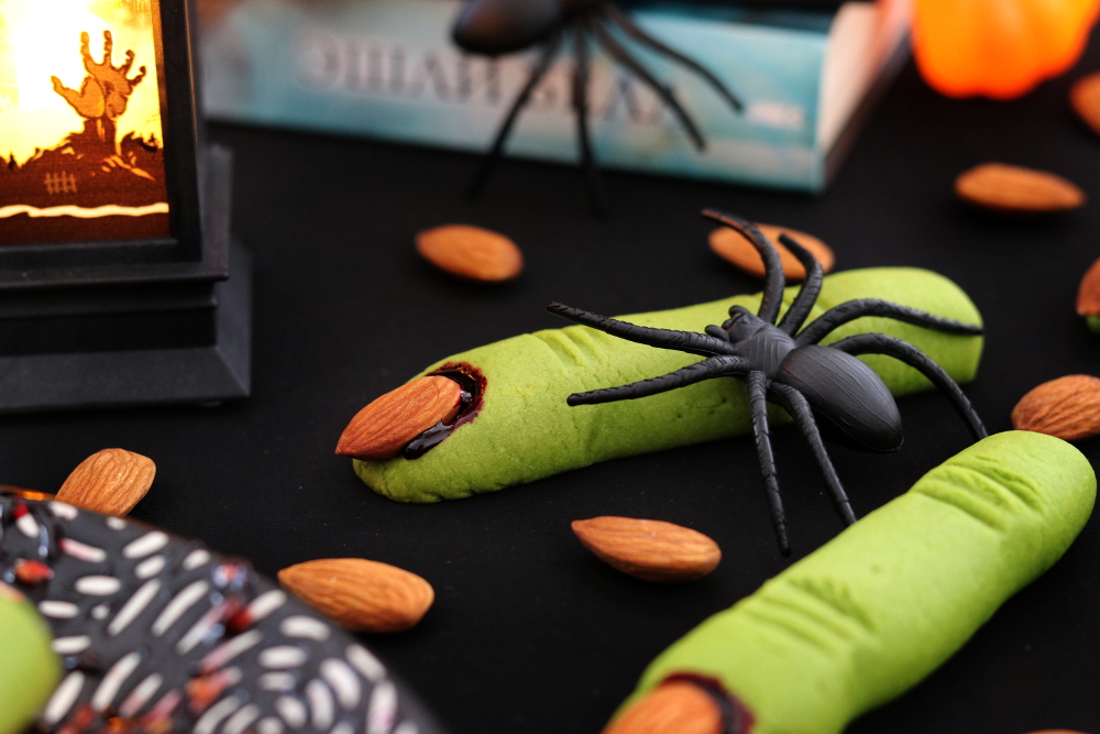 Если вы хотите чем-то удивить на Хэллоуин своих родных, друзей или детишек — пеките это печенье!!! Немного жутковатое на вид, забавное и оригинальное печенье в виде «пальцев ведьмы». Хоть на вид и страшное, но на вкус отменное! Вариаций этого печенья много, зеленый краситель можно не добавлять, тогда печенье будет светлым, но мне зеленые «пальцы» нравяться больше))) Миндаль по желанию можно очистить, но как по мне тогда пропадет устрашающий эффект. И кстати, не стоит бояться готовить это печенье, сам процесс достаточно прост и даже увлекателен, думаю справится любой. В общем, готовьте с удовольствием! Хорошего вам настроения, вкусных печенюшек и счастливого Хэллоуина!!!