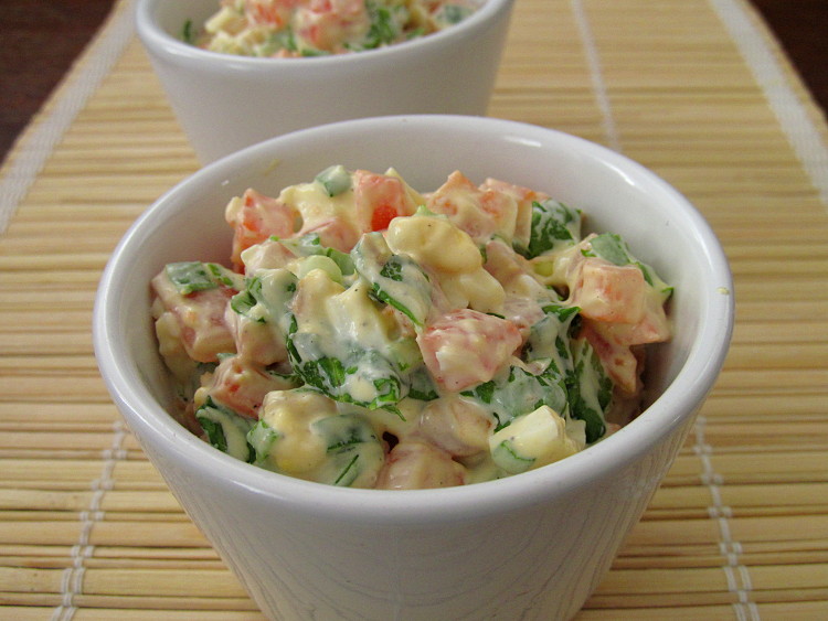 Пробовала яйца тоже порезать кубиком как морковь, а салат мелко порвать руками и все вместе смешать. Так вот, первый вариант все-же вкуснее)))